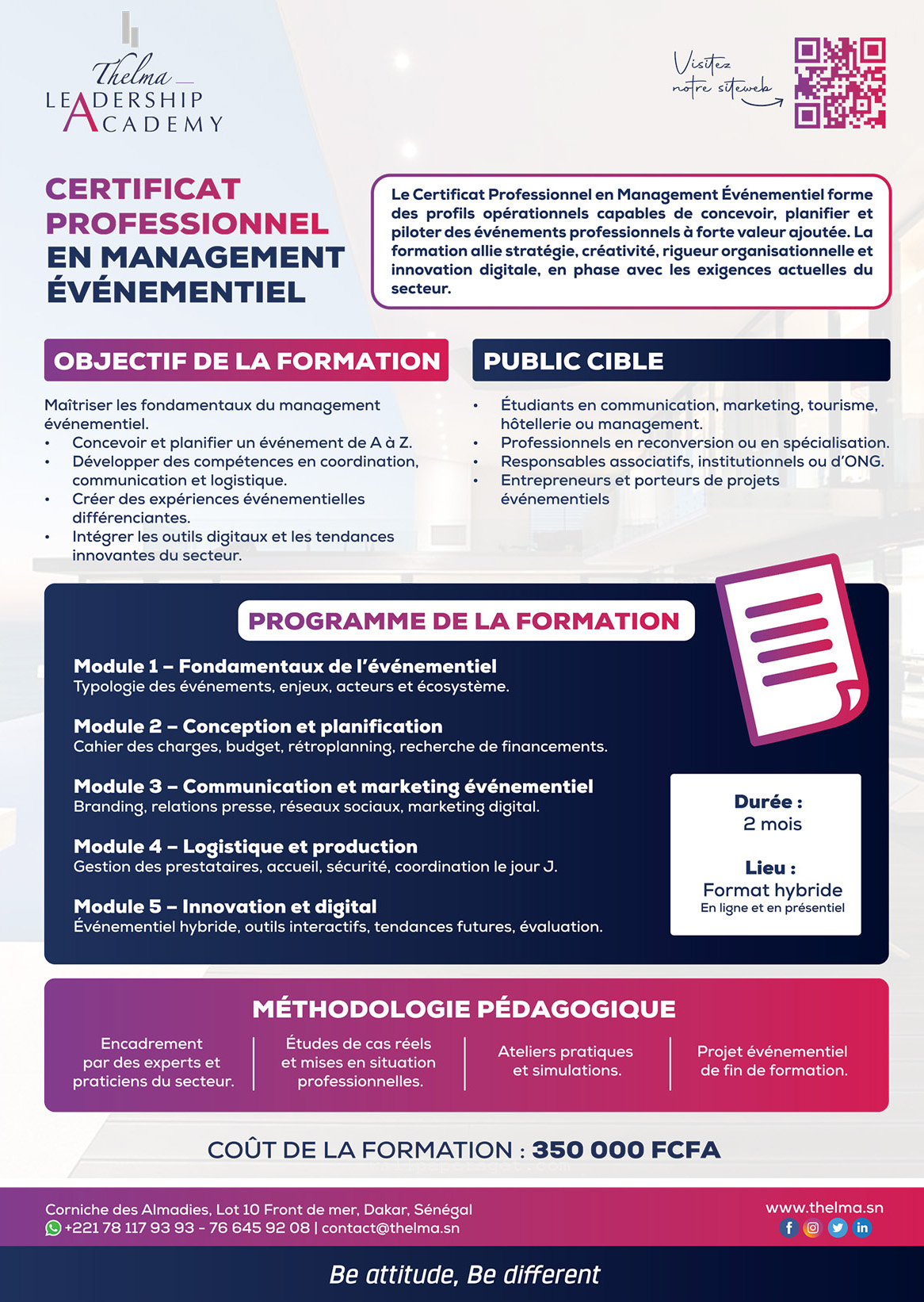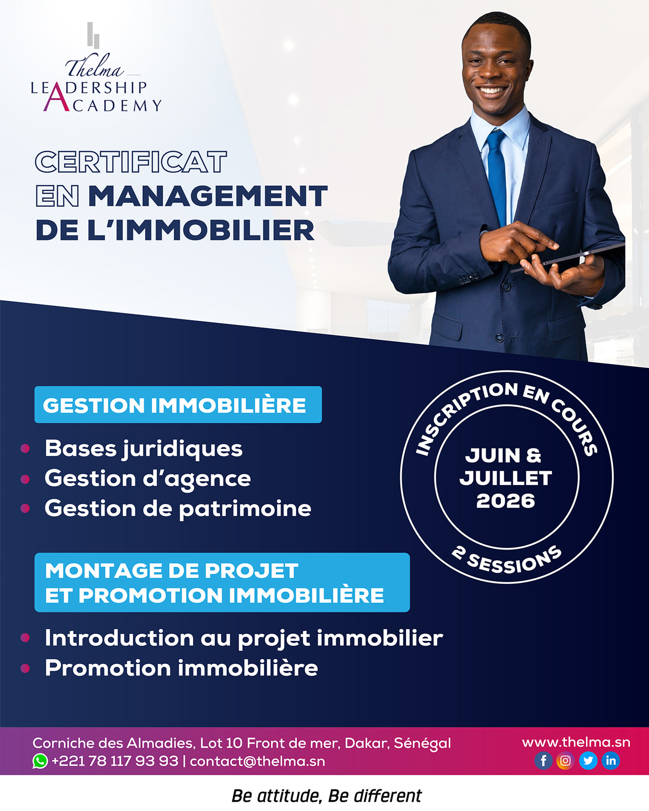 Première grande école de Management en Afrique subsaharienne spécialisée dans les métiers du Luxe, du Hospitality, du Fashion & Design, Thelma a pour ambition de former des hommes et des femmes qui seront, demain, acteurs et garants d’une culture de service d’exception.